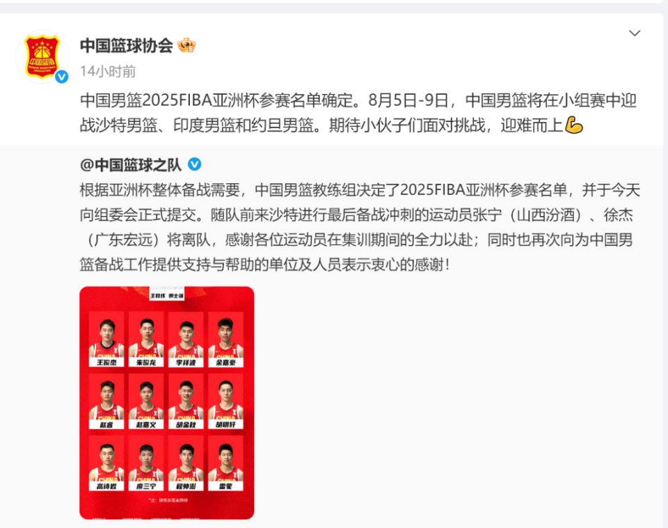 徐杰、张宁最后时刻落选!亚洲杯,中国男篮小组赛,就是生死战!